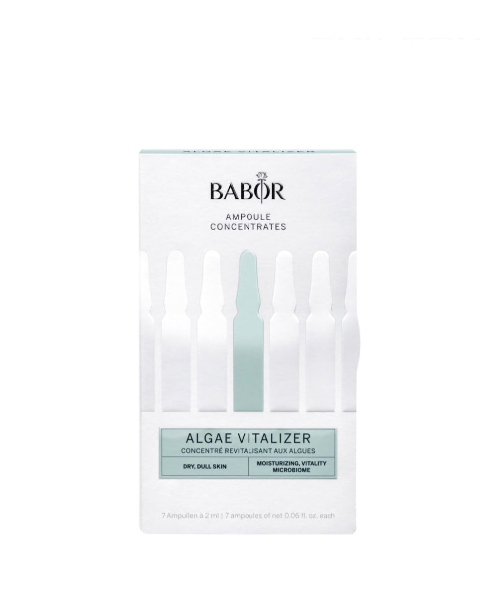 For a fresh, revitalized complexion, the Algae Vitalizer Ampoule Concentrates with active ingredients of marine origin specifically combat dehydration and negative environmental influences.