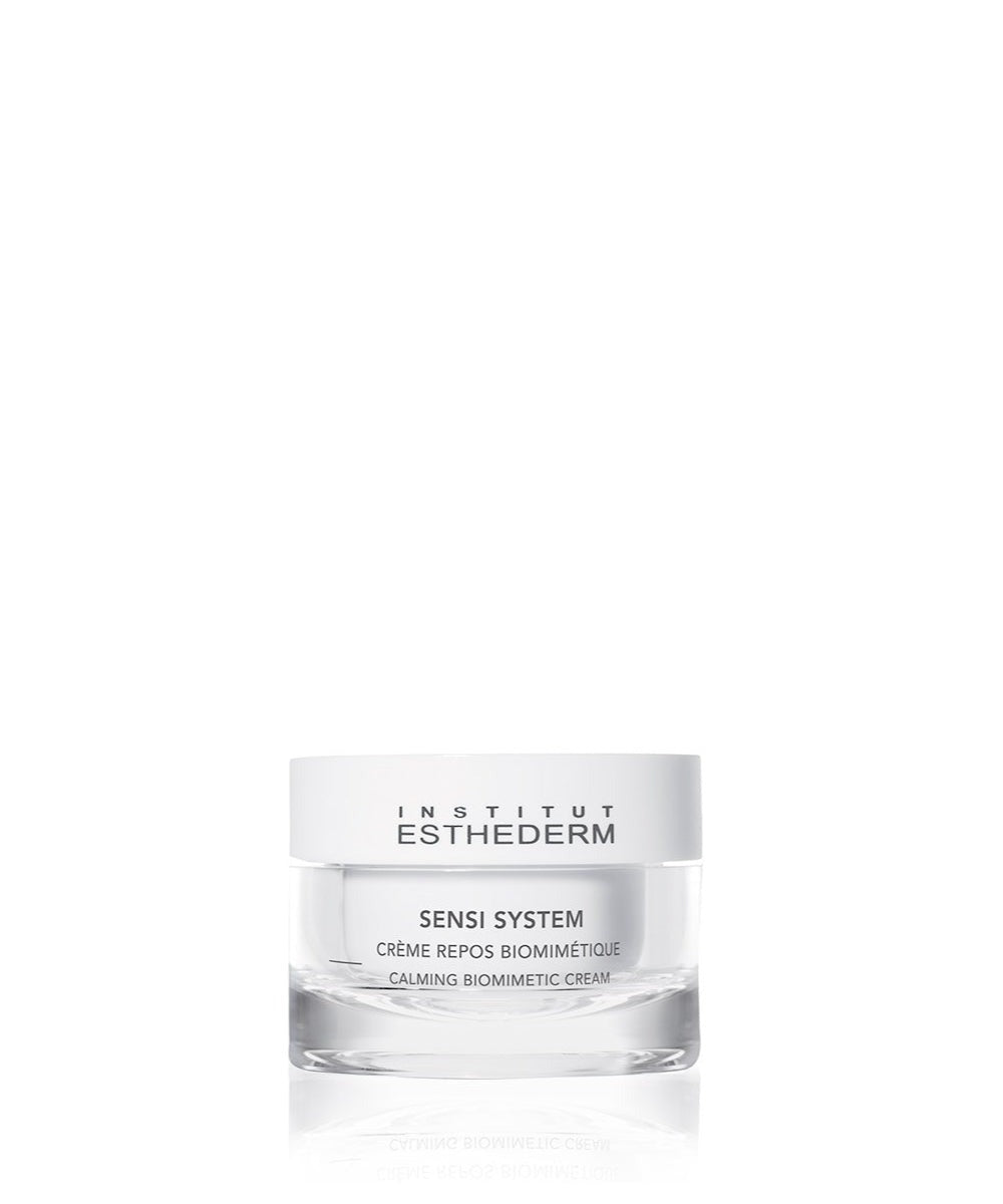 Calming Biomimetic Cream is designed for ultra-sensitive skin. This cream gives your skin well-earned rest, while restoring its balance and strengthening its defenses. The ultimate calming treatment for extreme sun intolerance.