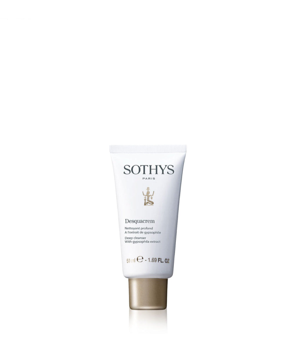 Suitable for all skin types, Sothys Desquacrem is a deep pore cleanser that gently eliminates impurities deep within the skin. The granule-free formulation dissolves dirt and oil and removes blackheads, leaving skin clean, fresh and better prepared for targeted treatment products. Formulated with Lipoaminoacids and Gypsophila extract, Desquacrem reduces and prevents enlarged pores for an overall smooth, clear complexion.