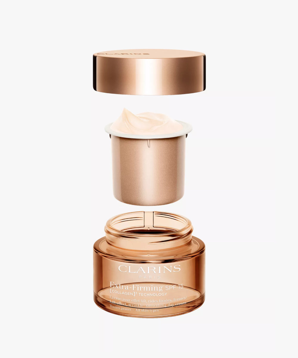 The Extra-Firming range has an exclusive technology to help increase the skin's collagen capital* [COLLAGEN]³ TECHNOLOGY.