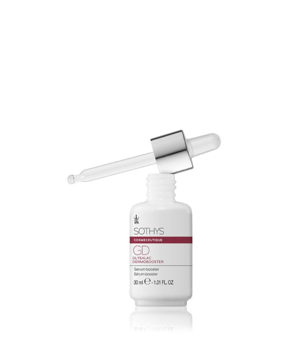 Sothys Cosmeceutique RX Glysalac Dermobooster treats oily, acne-prone skin with an advanced, resurfacing formula. Its nourishing ingredients remove built-up impurities to minimize pores, exfoliate dead cells, and boost radiance. It deeply hydrates to fight signs of aging and increase collagen production, creating a soft, smooth, even complexion that is clean and refreshed.