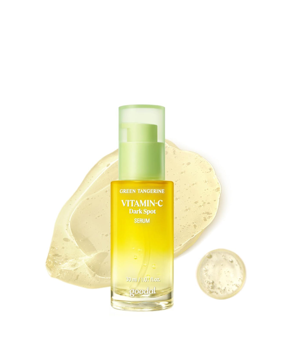 Vitamin C Dark Spot Serum is packed with a powerful blend of 70% fresh green tangerine extract, 4% niacinamide, and arbutin. Green tangerines are potent in antioxidants and have 10x more vitamin C than lemons. Powered by this fruit, our formula improves dark spots and post-acne hyperpigmentation while tackling the formation of new ones that have yet to surface.