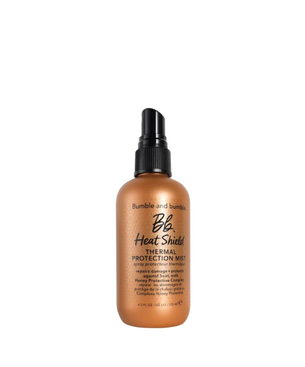• As you finish blow-drying your hair and you’re ready to style it, add Heat Shield Thermal Protection Mist to the ends of the hair to protect and polish your look.