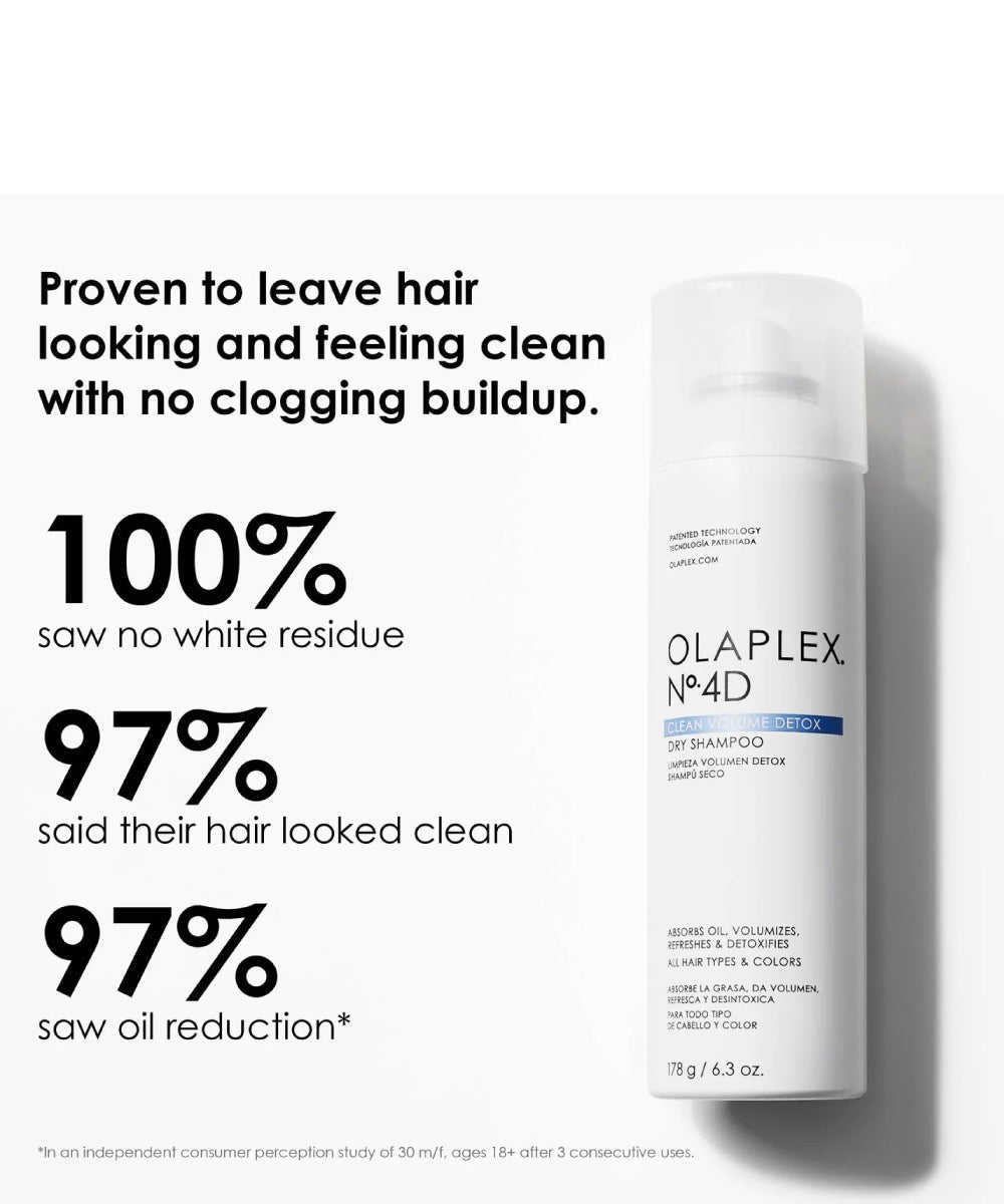 Light-as-air dry cleansing technology for scalp and hair that feel just washed. This healthy scalp dry shampoo is clinically proven to not clog pores or leave a white residue. No more dry, powdery roots or gritty buildup. Nº.4D is proven to leave hair looking and feeling clean.