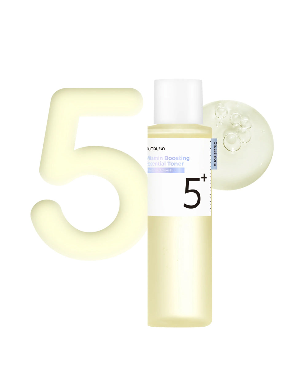 The Numbuzin No.5+ Vitamin Boosting Essence Toner is designed to brighten and rejuvenate tired, dull skin. This highly concentrated toner contains a blend of glutathione, vitamin C, and other potent ingredients that inhibit melanin synthesis, improve skin radiance, and reduce the appearance of dark spots and freckles. It also enhances skin elasticity and provides deep hydration, penetrating up to 15 layers of dead skin cells. Suitable for use as a first-step toner, it offers a smooth, non-irritating texture that prepares the skin for subsequent skincare products, boosting their effectiveness.