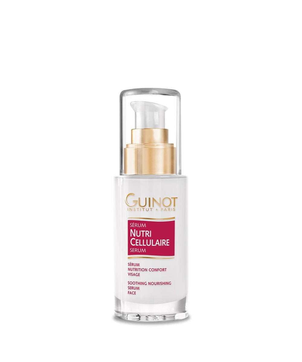 Guinot Serum Nutri Cellulaire / Face Serum is ideal for use on dry skin types. It is an intensive serum that comforts and softens even the driest of skin. The look and feel of skin is improved and the surface is fortified to enhance the skin's resilience and radiance.