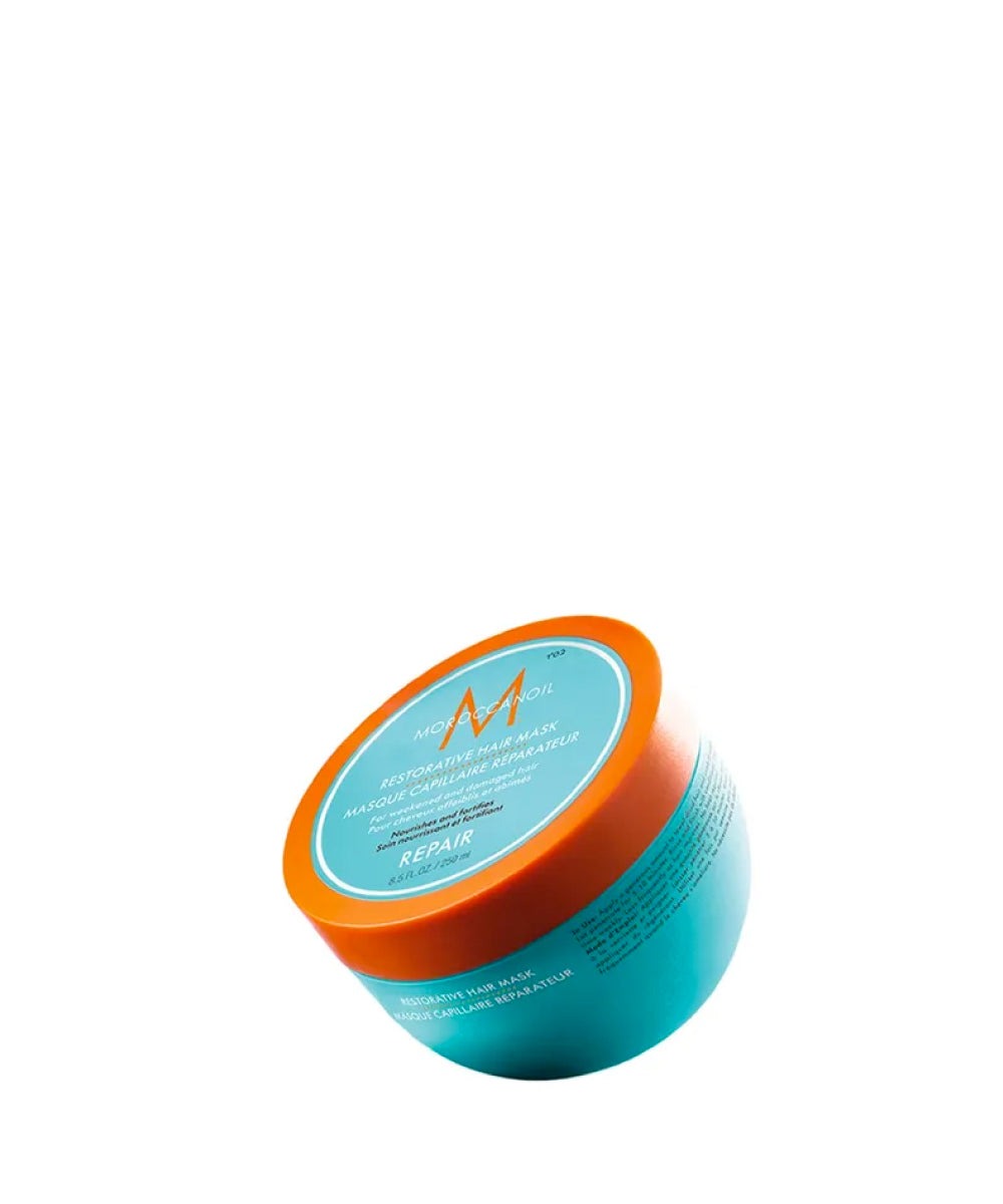 For damaged hair in need of instant repair, Moroccanoil® Restorative Hair Mask is a 5–7-minute revitalizing treatment that reconstructs hair and infuses protein back into strands that have been damaged by chemical treatments or heat styling. Its high-performance, deeply restorative formula is rich in argan oil, shea butter and reparative proteins that restore hair's elasticity and rebuild its strength from the inside out.