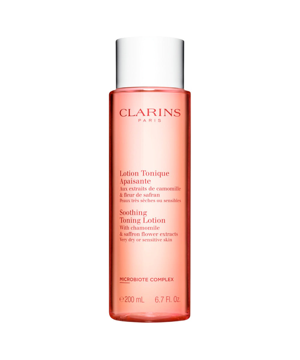 This alcohol-free toning lotion, rich in organic camomile and organic purple coneflower extracts, soothes and comforts skin. Enriched with the [Clarins Microbiota Complex], it naturally rebalances the skin flora. Soothing Toning Lotion from Le Domaine Clarins, in the Alps.