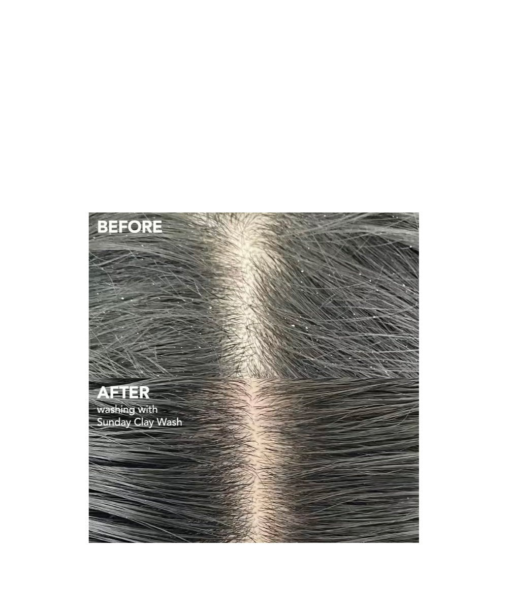 Divide the hair into four sections, down the middle of the head and ear to ear. Apply Sunday Purifying Clay Wash along the partings and massage into the scalp.
