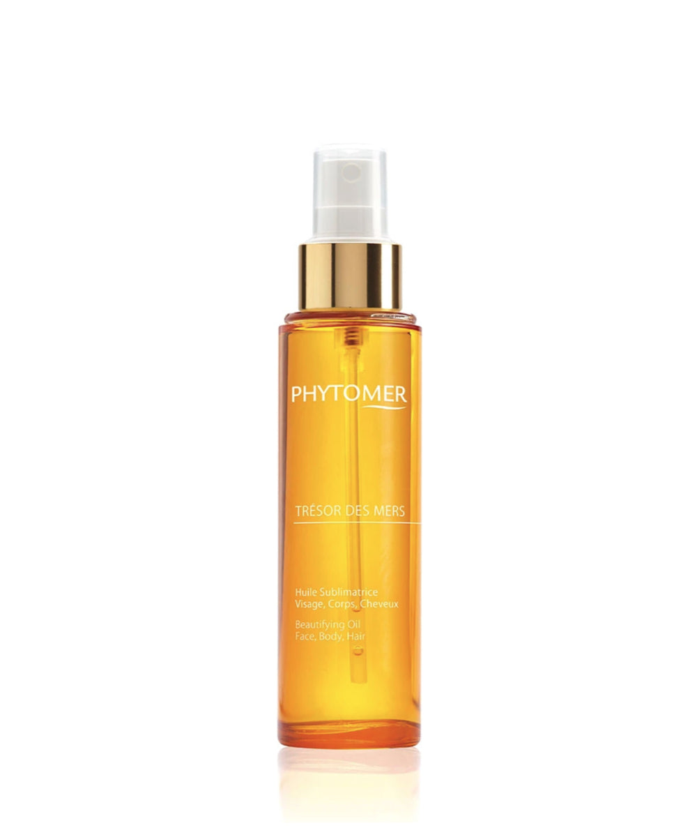 Transform your skin and reveal a luxuriously smooth complexion with Tresor des Mers - Beautifying Oil Face, Body, Hair by Phytomer. Enriched with a blend of marine and vegetal oils, this beautifying dry oil nourishes and protects the skin.