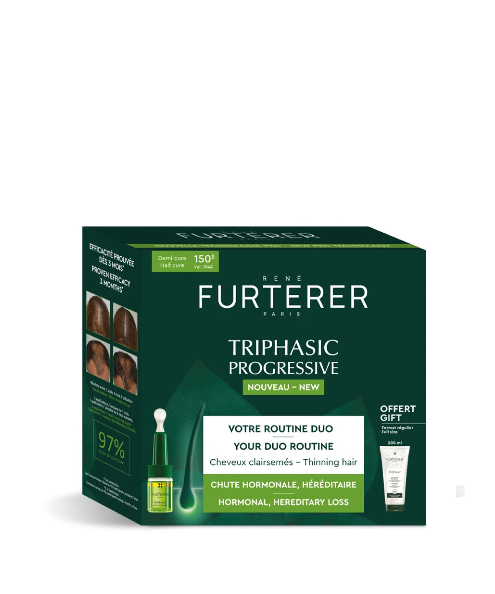 Designed in a practical single-dose format with an exclusive massaging applicator tip, TRIPHASIC PROGRESSIVE can be used after shampooing as an intensive routine or as a long-term routine. Dermatologically tested, it is also suitable for sensitive scalps.