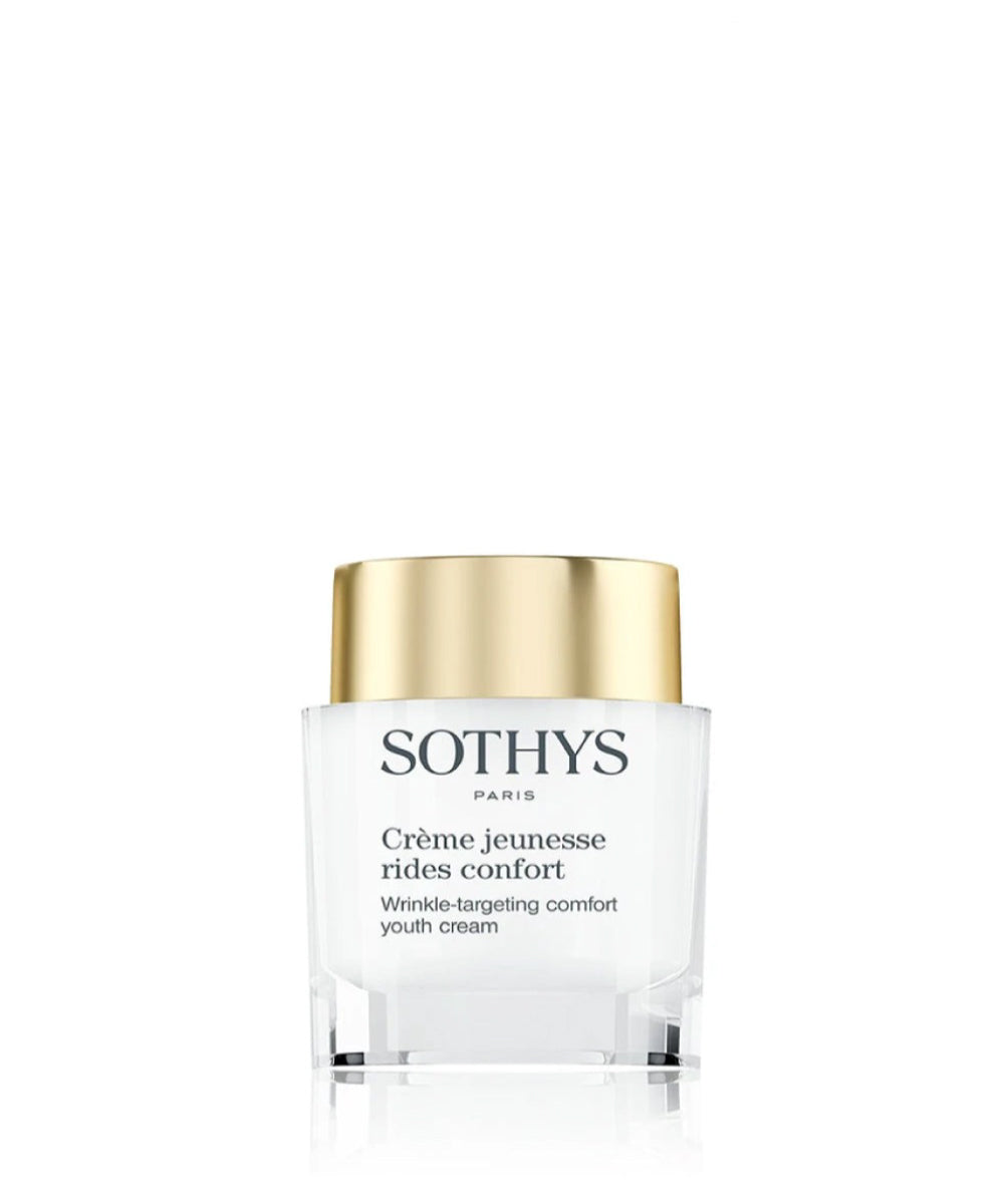 Sothys Wrinkle-Targeting Comfort Youth Cream is suitable for all skin types, those with dry and mature types. It is free of dye, gluten, hydroquinone and nano-particles. The skin's youth appears prolonged. It can be used by all ages to prevent premature aging signs.